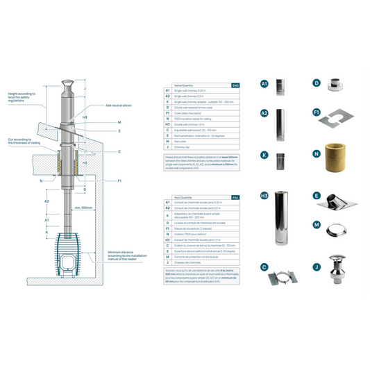 Isolert skorstein / pipe til badstuovn 3m (bak og opp) - HUUM