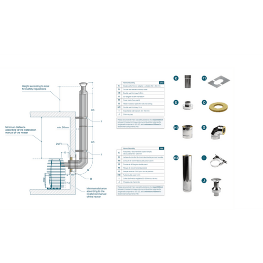Isolert skorstein / pipe til badstuovn 3m (Opp, bak, opp) - HUUM