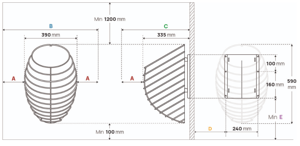 E min 310 mm (4, 6, 7, 9)